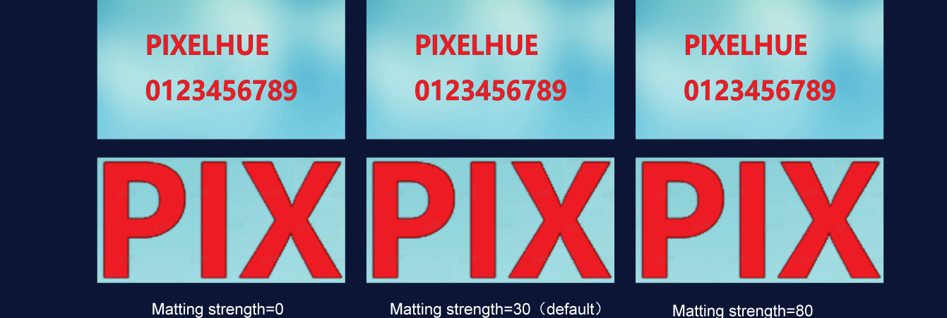 Case 1: Black Background with Red Text, Increasing Matting Strength